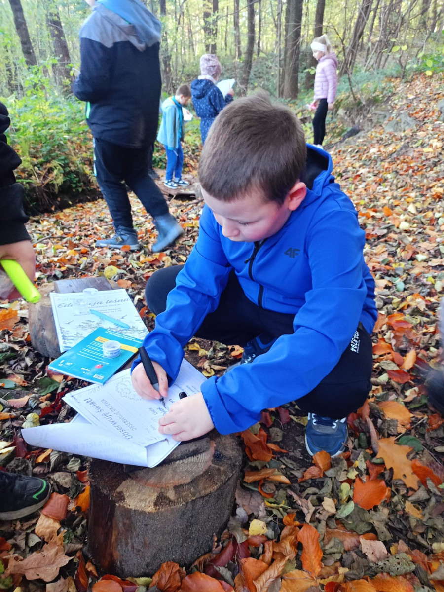 Uczniowie z zaangażowaniem odkrywali tajniki leśnej przyrody i już czekają na kolejną taką wyprawę